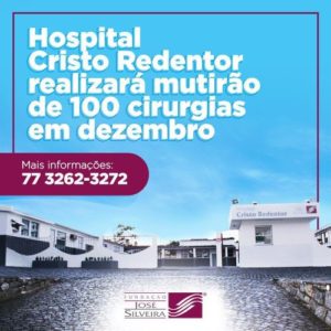 A Fundação José Silveira, através do Hospital Cristo Redentor, está desempenhando mais uma iniciativa em prol da saúde do município de Itapetinga, dedicando-se ao Mutirão de 100 Cirurgias nesse mês de dezembro, em produtiva parceria com a Secretaria de Saúde/Prefeitura Municipal de Itapetinga.