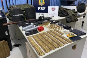 Três suspeitos de ataques a agências bancárias na Bahia foram presos, na madrugada deste domingo, 11, no município de Itabela, no sul do estado, durante ação conjunta da Polícia Militar (PM) e Polícia Rodoviária Federal (PRF). Com o trio, foi apreendido um verdadeiro arsenal de guerra utilizado nos crimes, com fuzil, submetralhadora e diversos outros tipos de armas, munições, explosivos e coletes balísticos.