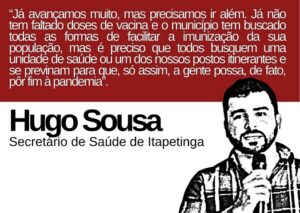 “A gente tem acompanhado as notícias de uma nova onda de pandemia na Europa. Aqui no Brasil, aconteceu uma liberação quase total das medidas de biossegurança, o que pode facilitar a transmissão do vírus, inclusive das suas novas variantes. Para evitar que essa nova onda nos atinja e que voltemos às restrições por conta de aumento no número de casos, a gente precisa acelerar a imunização da população”, disse o secretário de Saúde, Hugo Sousa.